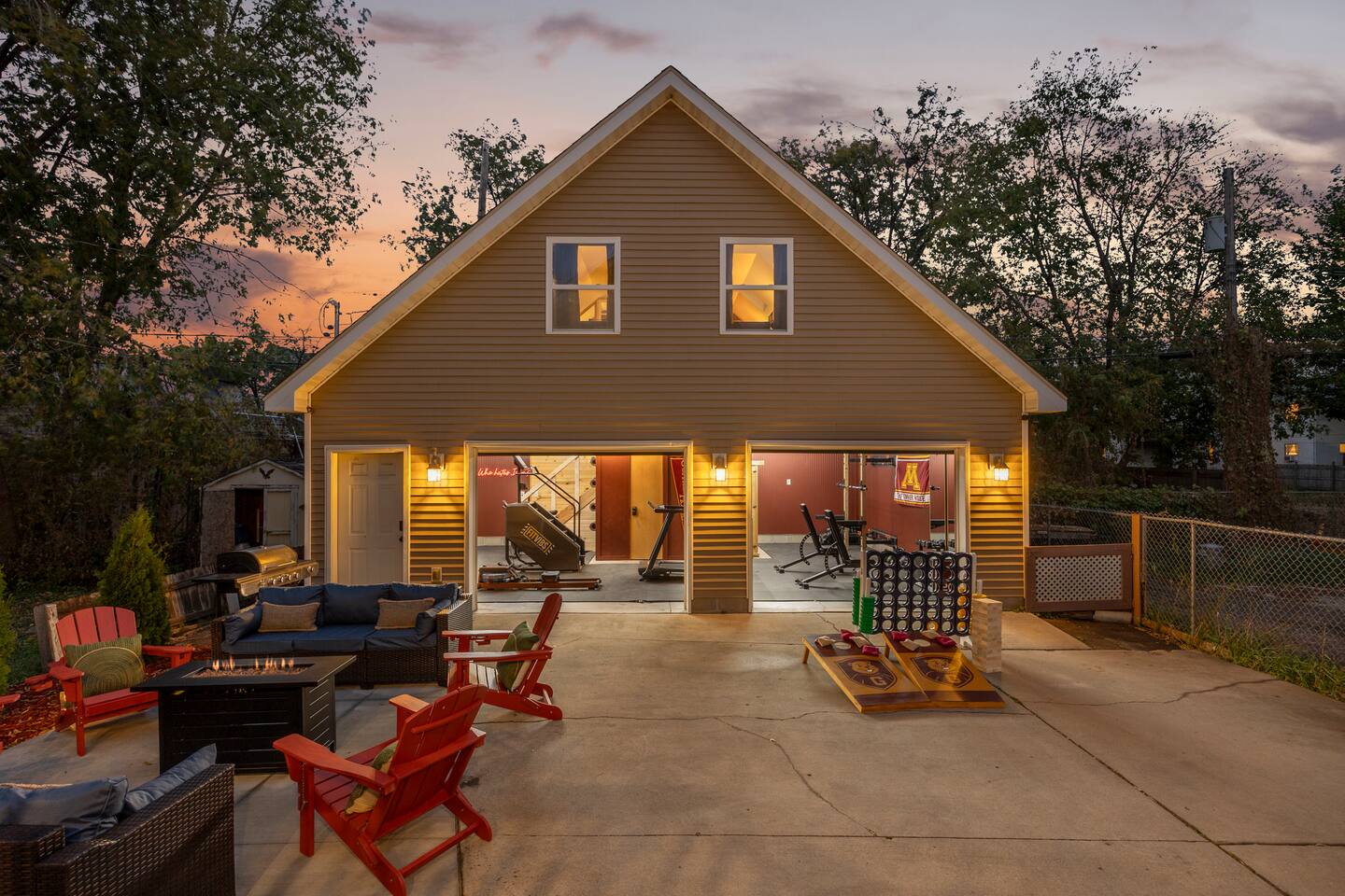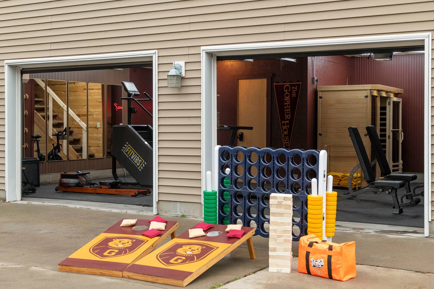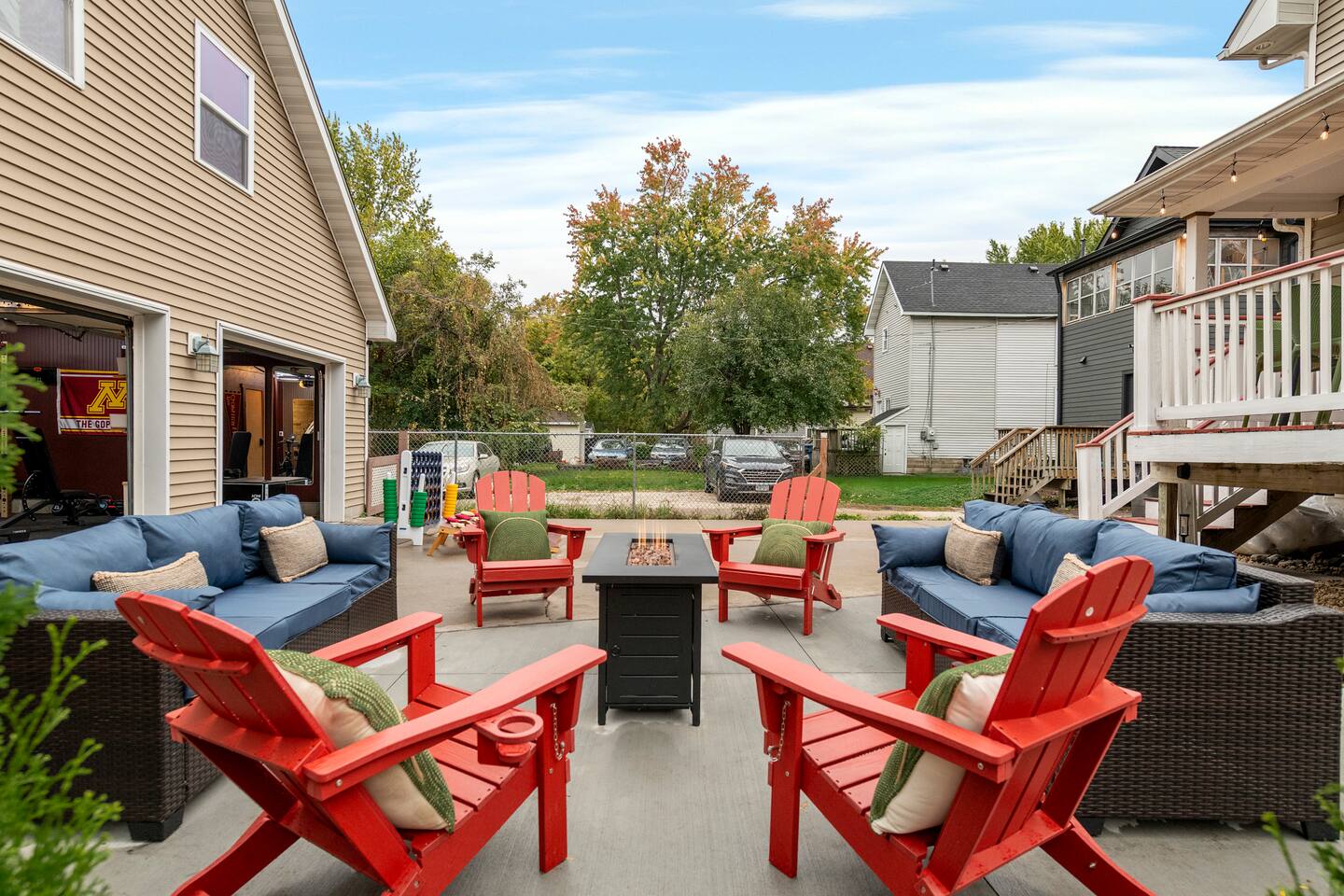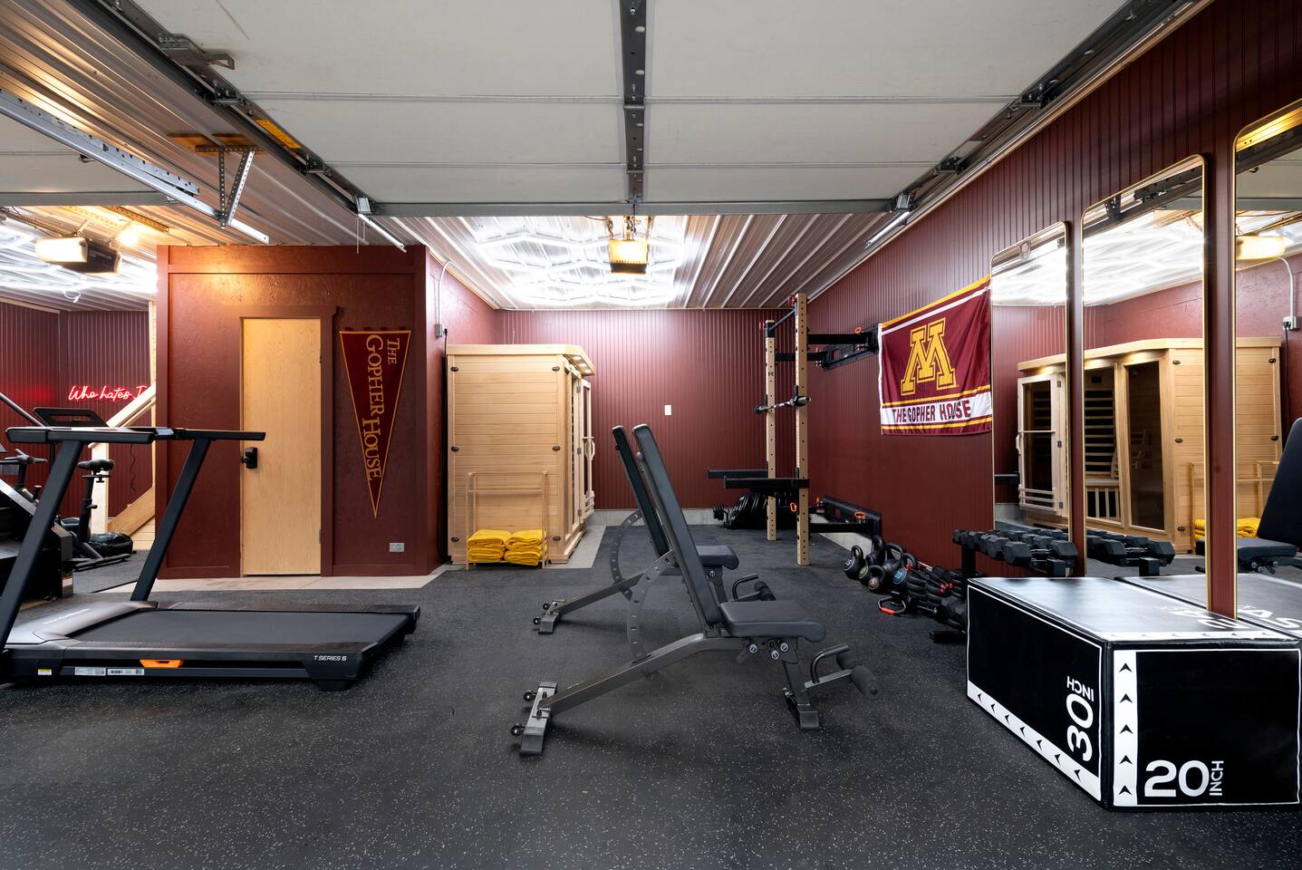 Free parking in the driveway + additional free street parking Central Minneapolis location just off Hwy 35 Less than 1.5 miles to U of M stadiums 10 minutes to Downtown Minneapolis 15 miles to MSP Airport For more photos & videos of the property, find us on insta @TheGopherHouse MAIN FLOOR Fully equipped kitchen with cookware, utensils, and serving essentials Coffee options: Keurig with K-Cups (limited provided) or full pot Two dining areas seat a total of 15 guests Living room with large Smart TV Bar area + mirror Dedicated office space with standing desk and monitor with HDMI cord Powder bath Laundry room with washer & dryer UPSTAIRS Primary Suite: King bed + sofa bed + ensuite bath with walk-in shower + Smart TV Bedroom 2: Queen bed + Smart TV Bedroom 3: King bed + Smart TV Bathroom: Soaking tub + shower combo BASEMENT Living room with 65” Smart TV Bedroom: 2 full beds (Step down into room) Bathroom: Full bath with shower NOTE: Low ceilings & please be cautious as there is a step down into the bedroom GARAGE GYM: Rower, treadmill, stair stepper, and bike Rogue squat rack, dumbbells, kettlebells, resistance bands, yoga mats, yoga blocks, and additional free weights Private infrared sauna Mini split Heat & AC GARAGE GAME ROOM: Pool table Shuffleboard table Arcade machines + Smart TV Mini split Heat & AC OUTDOOR SPACES Front porch: Two cozy chairs for morning coffee Back porch: Dining table for 10 for outdoor meals or cocktails Backyard fire pit: Surrounded by Adirondack chairs and cozy couches Yard games: Cornhole + outdoor games for all ages SLEEPING ARRANGEMENTS Bedroom 1: King bed (Primary) Bedroom 2: Queen bed Bedroom 3: King bed Bedroom 4: Two full beds (Basement) Main Floor Living Room: Queen Pull out sofa Modular Sofa in basement Sofa Bed in Primary bedroom BATHROOMS 1 Ensuite with walk-in shower (Primary) 1 Full bath with soaking tub & shower (Upstairs) 1 Full bath with shower (Basement) 1 Powder bath (Main level) Towels, hair dryer, shampoo, conditioner, body wash, and lotion included. LOCAL HIGHLIGHTS: Dinkytown: 0.9 miles Huntington Bank Stadium: 1.3 miles Mariucci & Ridder Arenas: 1.5 miles Williams Arena & Sports Pavilion: 1.3 miles Siebert Field: 0.7 miles Jane Sage Cowles Stadium: 1 mile US Bank Stadium: 2.1 miles Target Center & Target Field: 2.6 miles Xcel Energy Center/Grand Casino Arena (St. Paul): 9 miles Mall of America: 13.2 miles MSP Airport: 15 miles