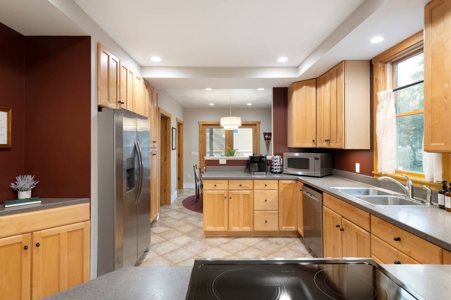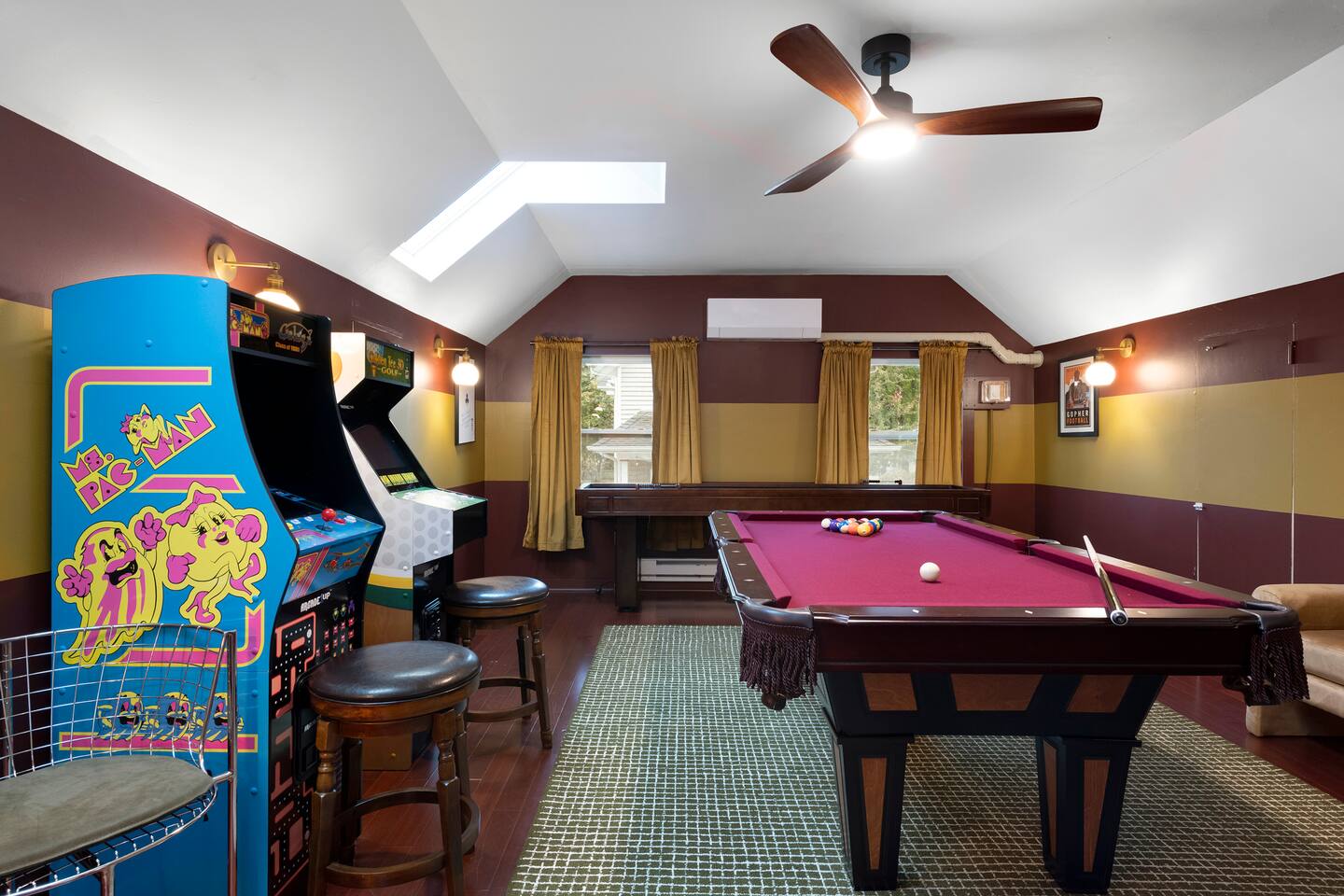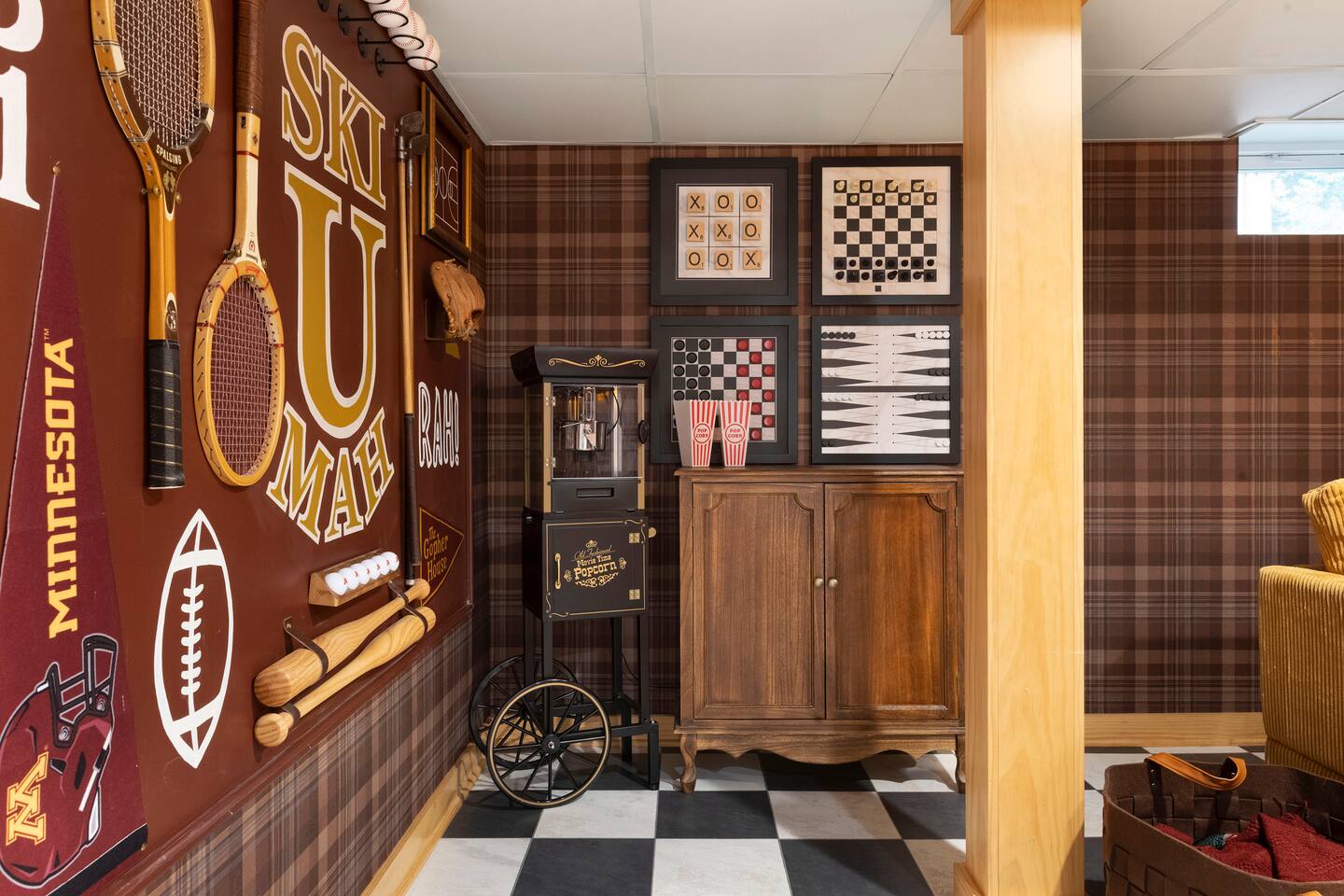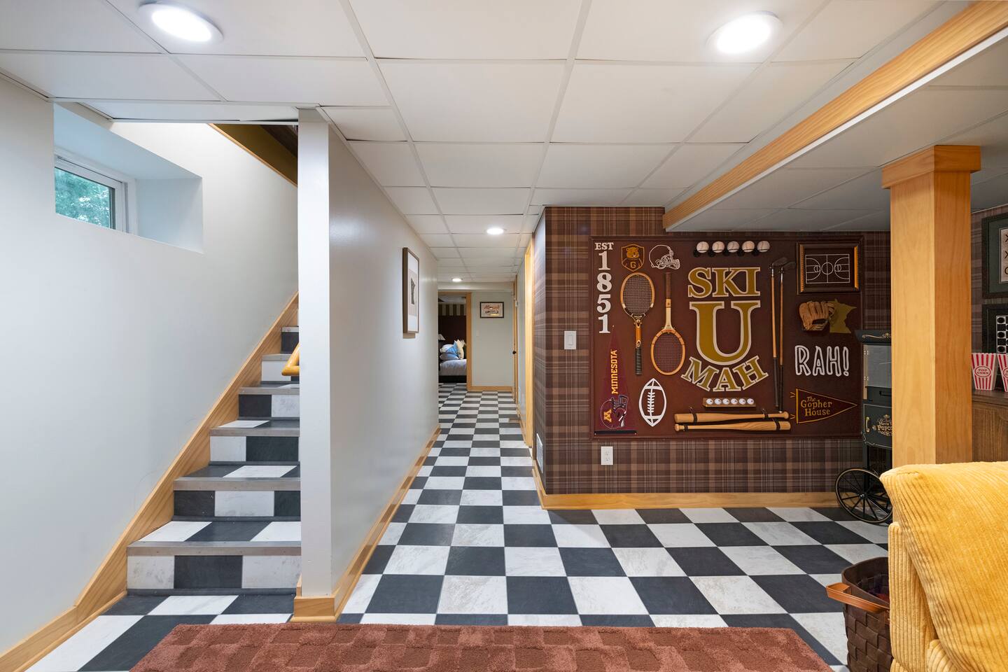 Free parking in the driveway + additional free street parking Central Minneapolis location just off Hwy 35 Less than 1.5 miles to U of M stadiums 10 minutes to Downtown Minneapolis 15 miles to MSP Airport For more photos & videos of the property, find us on insta @TheGopherHouse MAIN FLOOR Fully equipped kitchen with cookware, utensils, and serving essentials Coffee options: Keurig with K-Cups (limited provided) or full pot Two dining areas seat a total of 15 guests Living room with large Smart TV Bar area + mirror Dedicated office space with standing desk and monitor with HDMI cord Powder bath Laundry room with washer & dryer UPSTAIRS Primary Suite: King bed + sofa bed + ensuite bath with walk-in shower + Smart TV Bedroom 2: Queen bed + Smart TV Bedroom 3: King bed + Smart TV Bathroom: Soaking tub + shower combo BASEMENT Living room with 65” Smart TV Bedroom: 2 full beds (Step down into room) Bathroom: Full bath with shower NOTE: Low ceilings & please be cautious as there is a step down into the bedroom GARAGE GYM: Rower, treadmill, stair stepper, and bike Rogue squat rack, dumbbells, kettlebells, resistance bands, yoga mats, yoga blocks, and additional free weights Private infrared sauna Mini split Heat & AC GARAGE GAME ROOM: Pool table Shuffleboard table Arcade machines + Smart TV Mini split Heat & AC OUTDOOR SPACES Front porch: Two cozy chairs for morning coffee Back porch: Dining table for 10 for outdoor meals or cocktails Backyard fire pit: Surrounded by Adirondack chairs and cozy couches Yard games: Cornhole + outdoor games for all ages SLEEPING ARRANGEMENTS Bedroom 1: King bed (Primary) Bedroom 2: Queen bed Bedroom 3: King bed Bedroom 4: Two full beds (Basement) Main Floor Living Room: Queen Pull out sofa Modular Sofa in basement Sofa Bed in Primary bedroom BATHROOMS 1 Ensuite with walk-in shower (Primary) 1 Full bath with soaking tub & shower (Upstairs) 1 Full bath with shower (Basement) 1 Powder bath (Main level) Towels, hair dryer, shampoo, conditioner, body wash, and lotion included. LOCAL HIGHLIGHTS: Dinkytown: 0.9 miles Huntington Bank Stadium: 1.3 miles Mariucci & Ridder Arenas: 1.5 miles Williams Arena & Sports Pavilion: 1.3 miles Siebert Field: 0.7 miles Jane Sage Cowles Stadium: 1 mile US Bank Stadium: 2.1 miles Target Center & Target Field: 2.6 miles Xcel Energy Center/Grand Casino Arena (St. Paul): 9 miles Mall of America: 13.2 miles MSP Airport: 15 miles